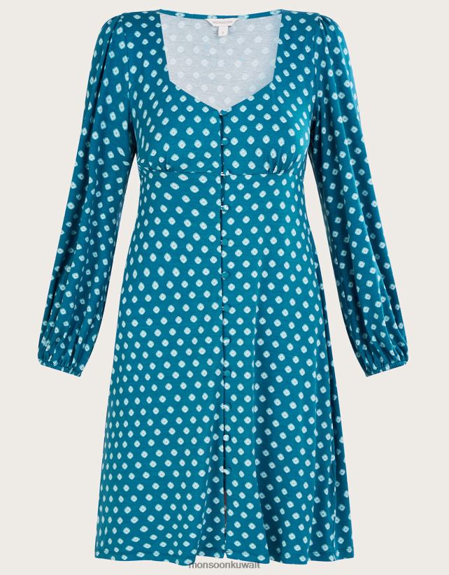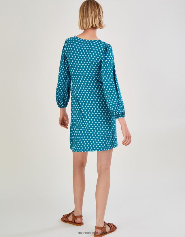فستان جيرسيه قصير بيبي دول بطباعة هندسية ملابس الأزرق (الفيروز) Monsoon نحيف N4BV8X430 - Monsoon kuwait online shopping