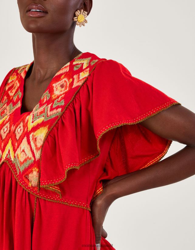فستان جيرسي بأكمام كشكش مطرز ملابس أحمر Monsoon نحيف N4BV8X485 - Monsoon online customer service