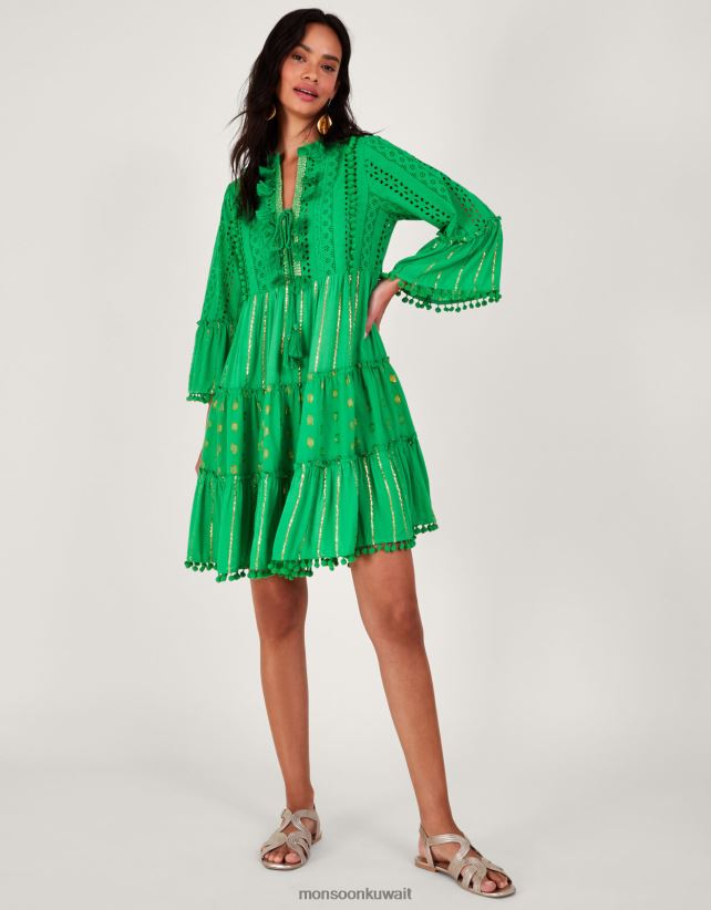 فستان قفطان بشرابة معدنية ملابس أخضر Monsoon نحيف N4BV8X295 - Monsoon children