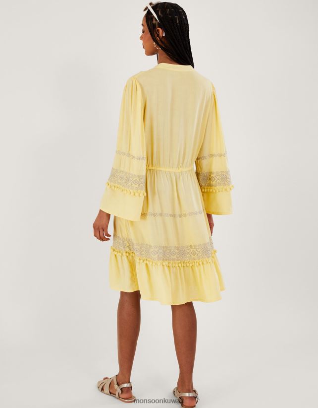 فستان قفطان مطرز من نوع بوم بوم من لينزينغ إيكوفيرو ملابس أصفر Monsoon نحيف N4BV8X54 - Monsoon children