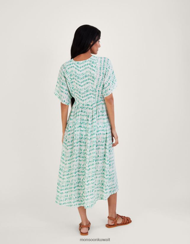 Monsoon محل - فستان قفطان بطبعة ربطة عنق وصدرية مكشكشة ملابس الأزرق (الفيروز) Monsoon نحيف N4BV8X733