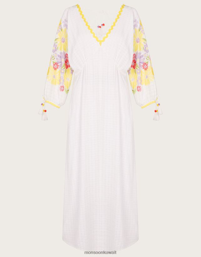 Monsoon معنى - فستان قفطان ميدي مطرز بالزهور ملابس أبيض Monsoon نحيف N4BV8X340