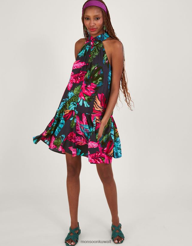 Monsoon Kuwait - فستان بطبعة النخيل من بريا مصنوع من الفيسكوز المستدام ملابس الأزرق (منتصف الليل) Monsoon نحيف N4BV8X337