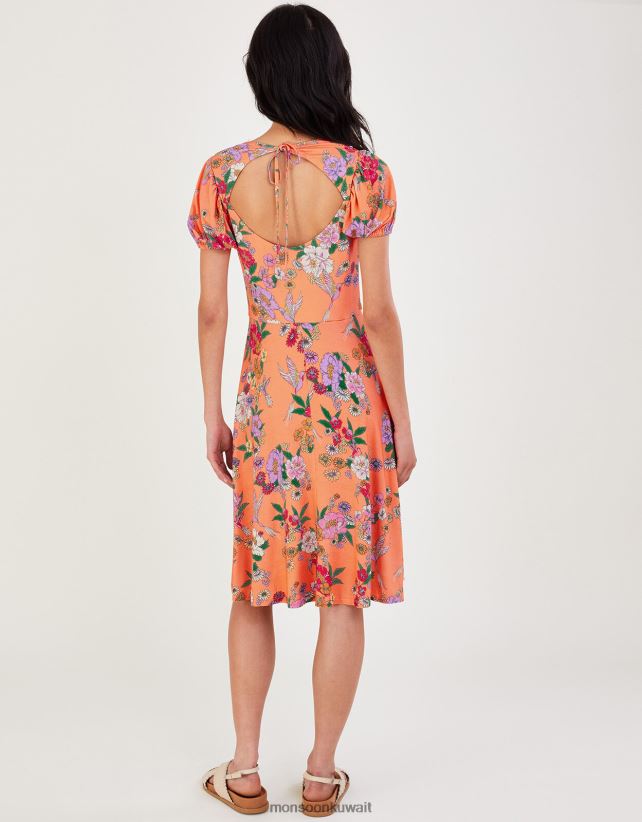Monsoon UAE - فستان جيرسيه مزين بالدانتيل وزهور ملابس البرتقال (الخوخ) Monsoon نحيف N4BV8X703