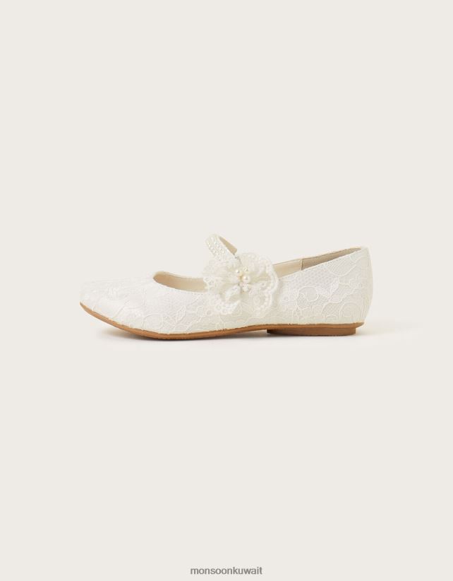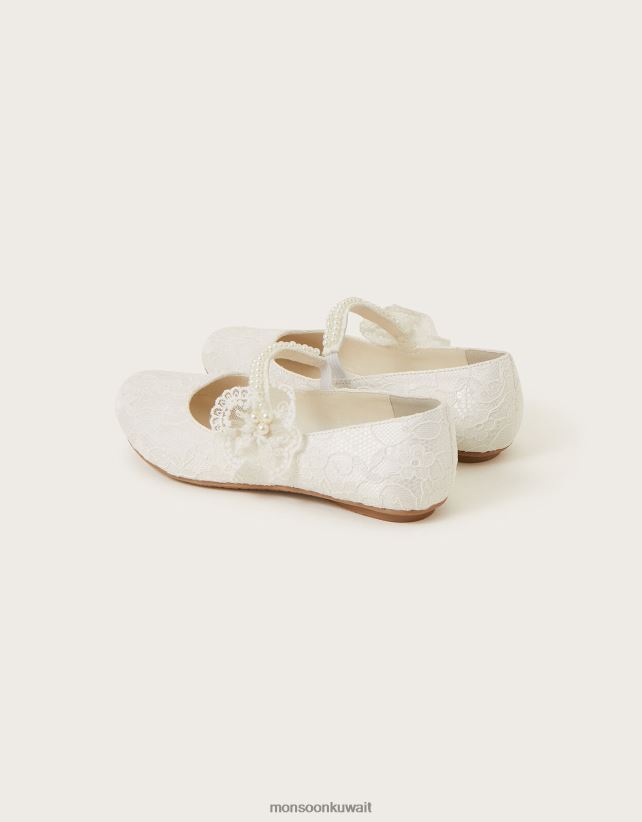 حذاء باليرينا مسطح بحزام من الدانتيل واللؤلؤ أحذية عاج Monsoon بنت N4BV8X2391 - Monsoon online customer service