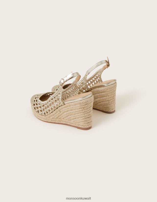 حذاء معدني منسوج ومغلق عند الأصابع باللون الذهبي أحذية ذهب Monsoon نحيف N4BV8X1536 - Monsoon online customer service