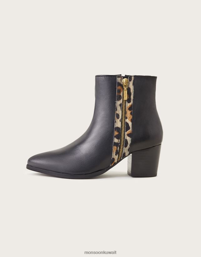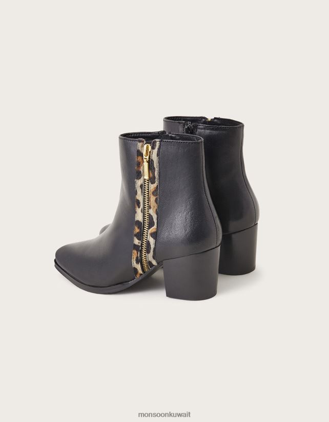 Monsoon Kuwait - أحذية الكاحل الجلدية المزخرفة بالحيوانات أحذية أسود Monsoon نحيف N4BV8X1489