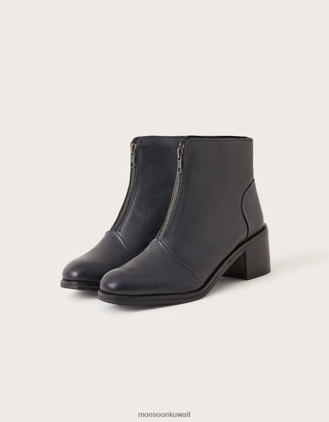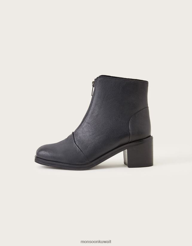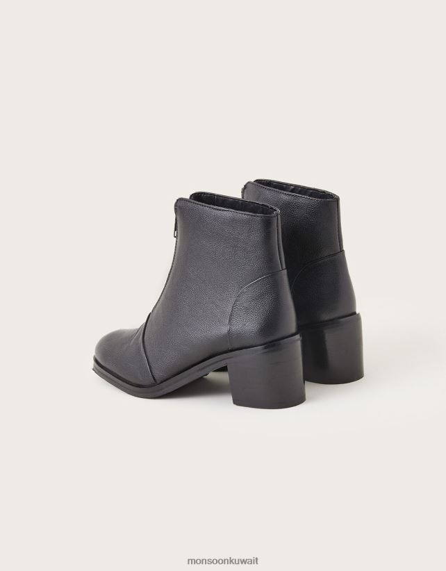 Monsoon UAE - حذاء جلدي سميك بسحاب أمامي أحذية أسود Monsoon نحيف N4BV8X1510