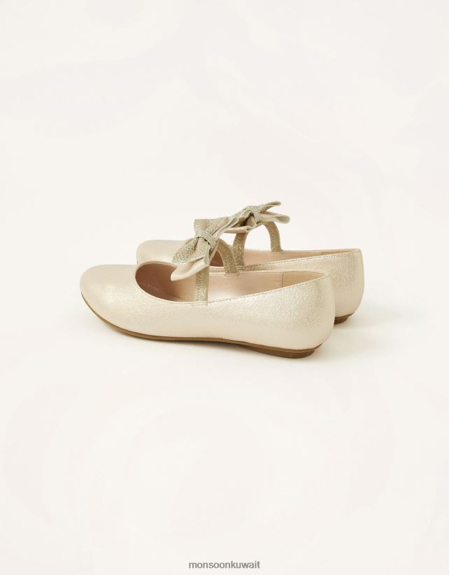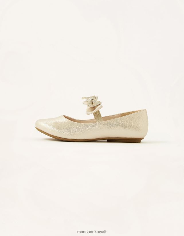 حذاء باليرينا مسطح بفيونكة أحذية ذهب Monsoon بنت N4BV8X2808 - Monsoon kuwait online shopping