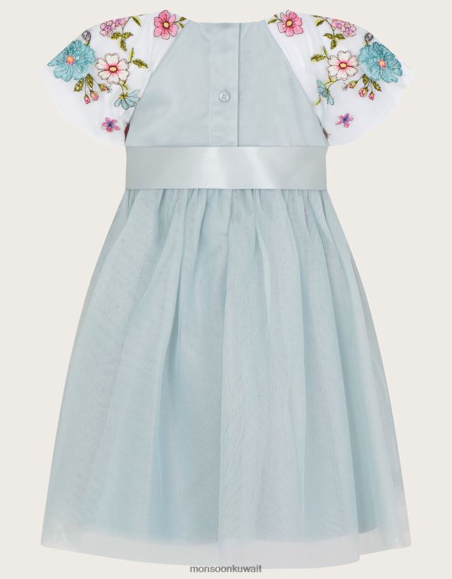 فستان مطرز بأكمام كيب للأطفال من إمزي ملابس أخضر Monsoon بنت N4BV8X2117 - Monsoon online customer service