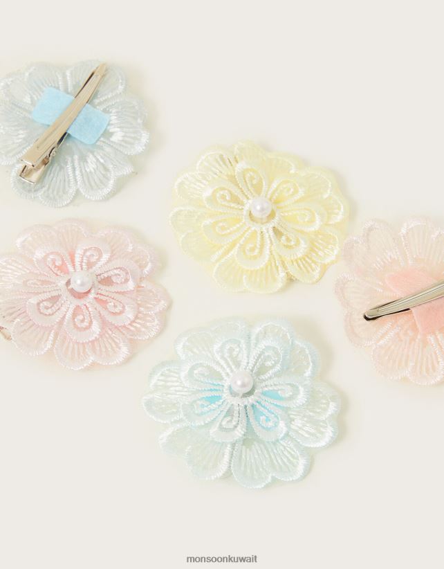 Monsoon accessorize - مشابك شعر على شكل زهرة دانتيل، 5 قطع ملحق رشيقة Monsoon بنت N4BV8X2574