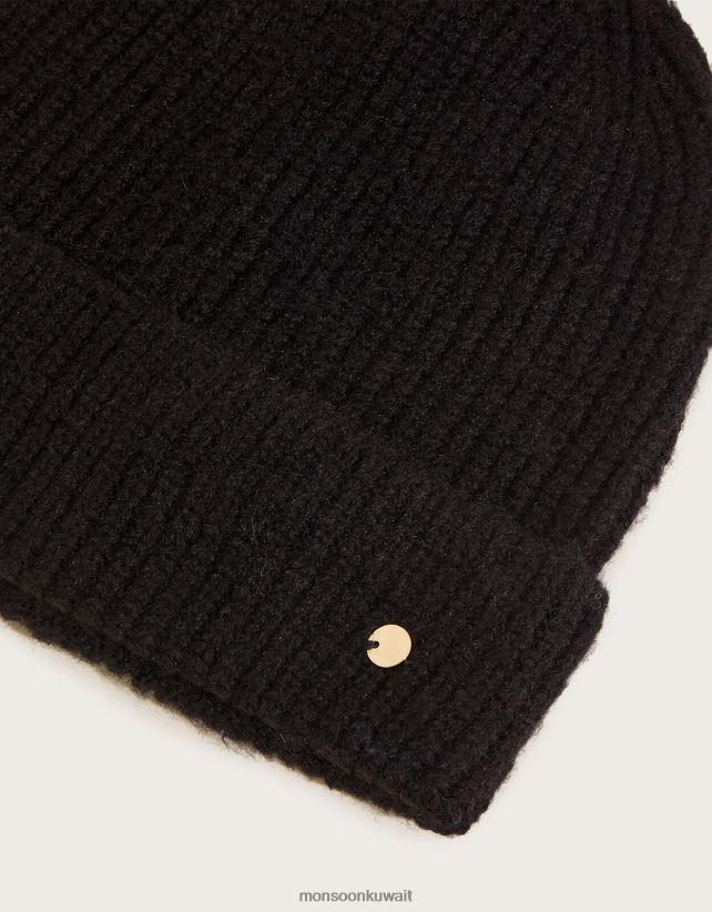 Monsoon محل - قبعة صغيرة متماسكة فائقة النعومة من البوليستر المعاد تدويره ملحق أسود Monsoon نحيف N4BV8X1415