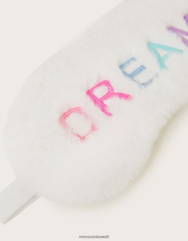 أحلام سعيدة. احصلي على نوم مثالي أثناء الليل، حتى أثناء النوم مع قناع العين هذا! إنه مطلي بالفرو الصناعي الناعم، مع تطريز كلمة "dream" على الجهة الأمامية.