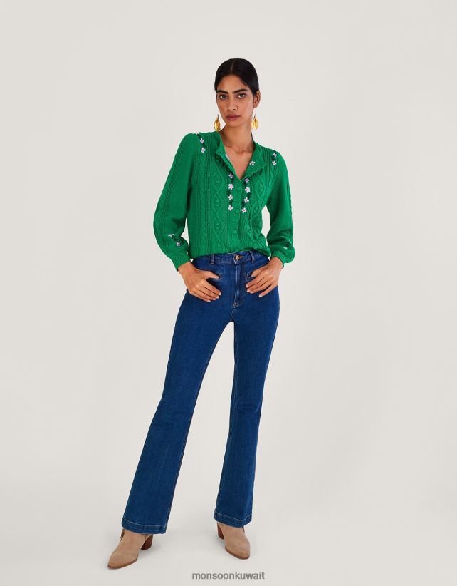 سترة متماسكة مطرزة يدويًا ملابس أخضر Monsoon نحيف N4BV8X1060 - Monsoon kuwait avenues