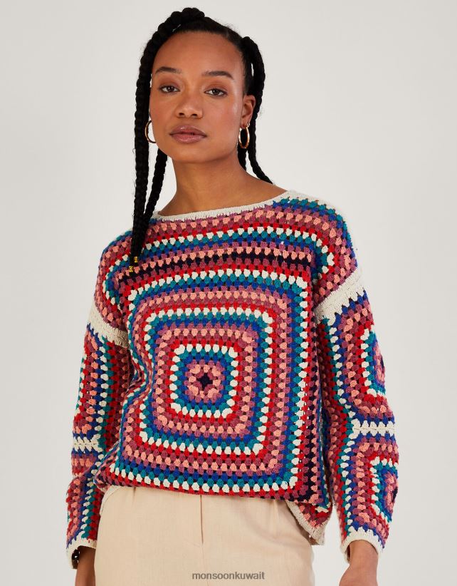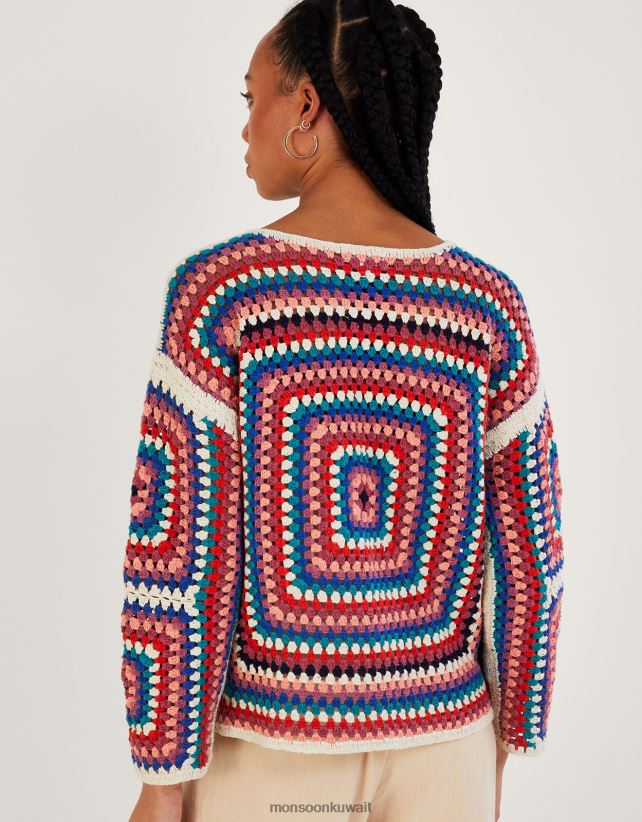 كنزة كروشيه مربعة من القطن المستدام ملابس عاج Monsoon نحيف N4BV8X768 - Monsoon children