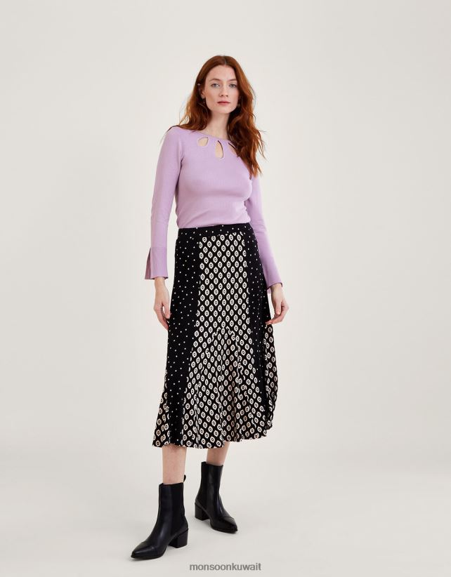 كنزة مضلعة بفتحات مع لينزينج إيكوفيرو ملابس الأرجواني (أرجواني) Monsoon نحيف N4BV8X524 - Monsoon kuwait avenues