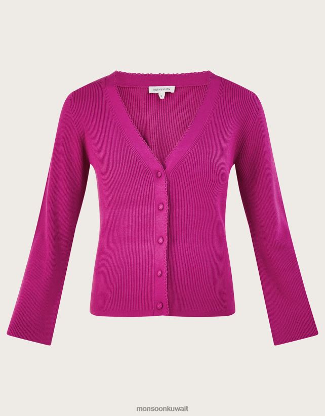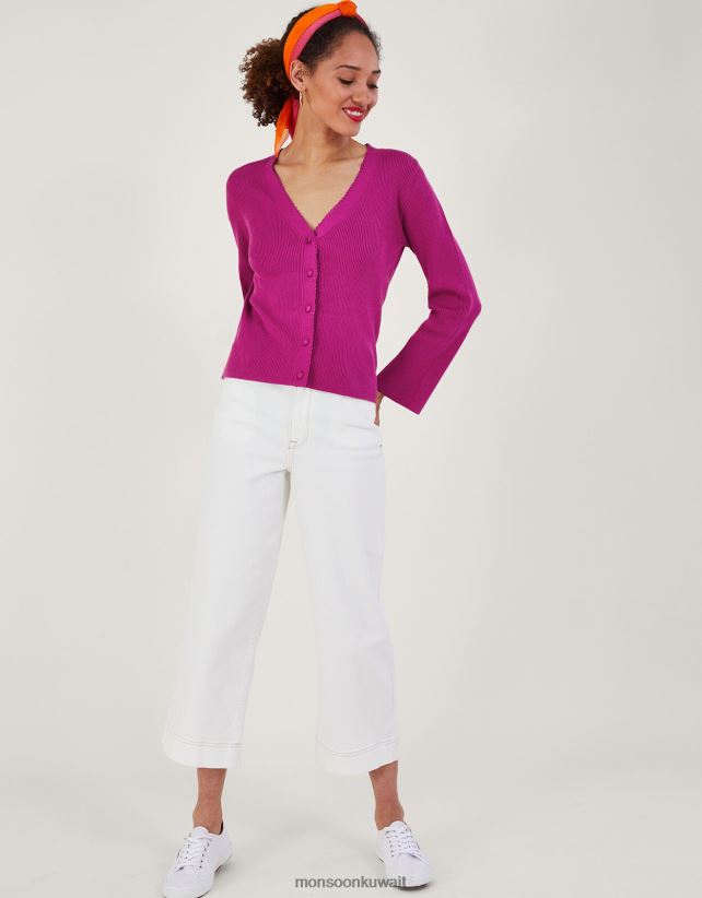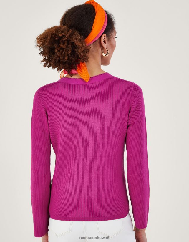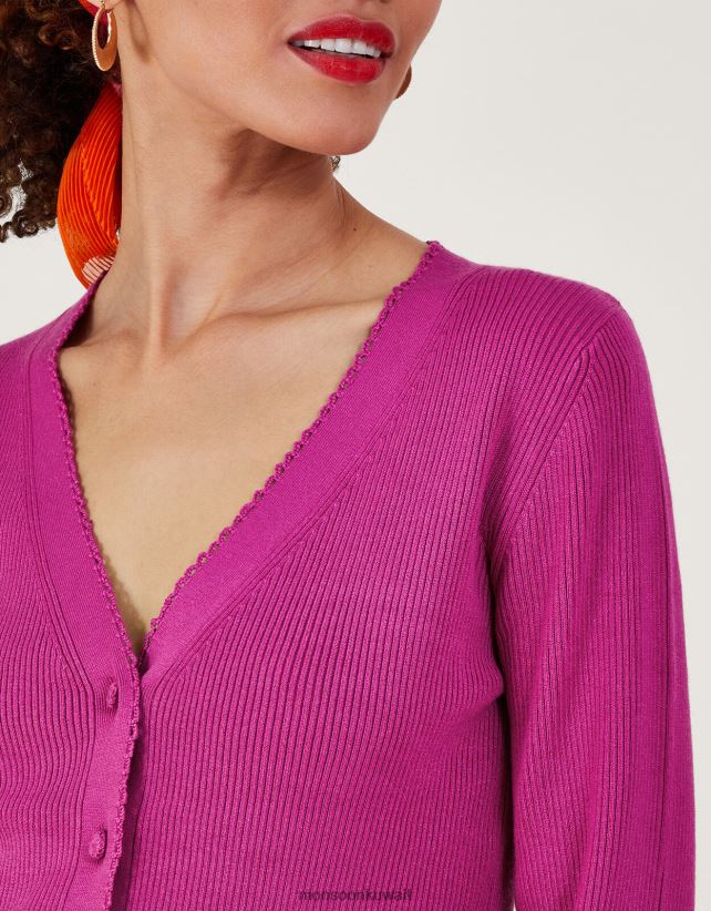 Monsoon محل - سترة كروشيه بأزرار مع لينزينج إيكوفيرو ملابس لون القرنفل Monsoon نحيف N4BV8X214