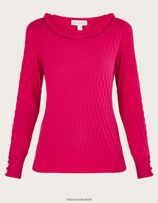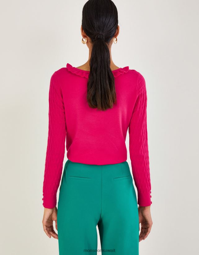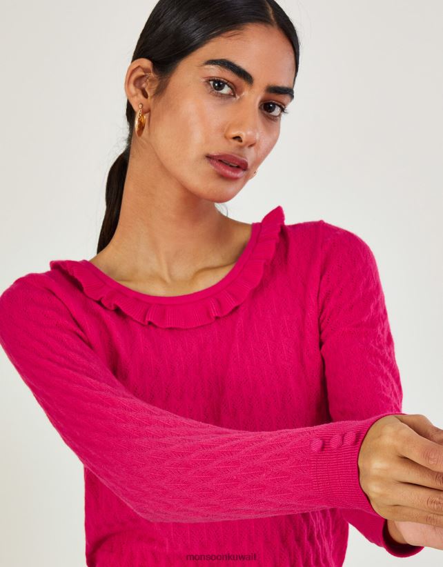 Monsoon محل - كنزة بكشكشة ورقبة واسعة مع الفيسكوز المستدام ملابس لون القرنفل Monsoon نحيف N4BV8X405