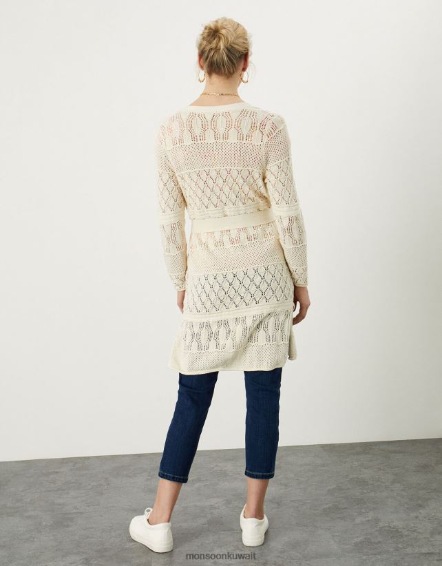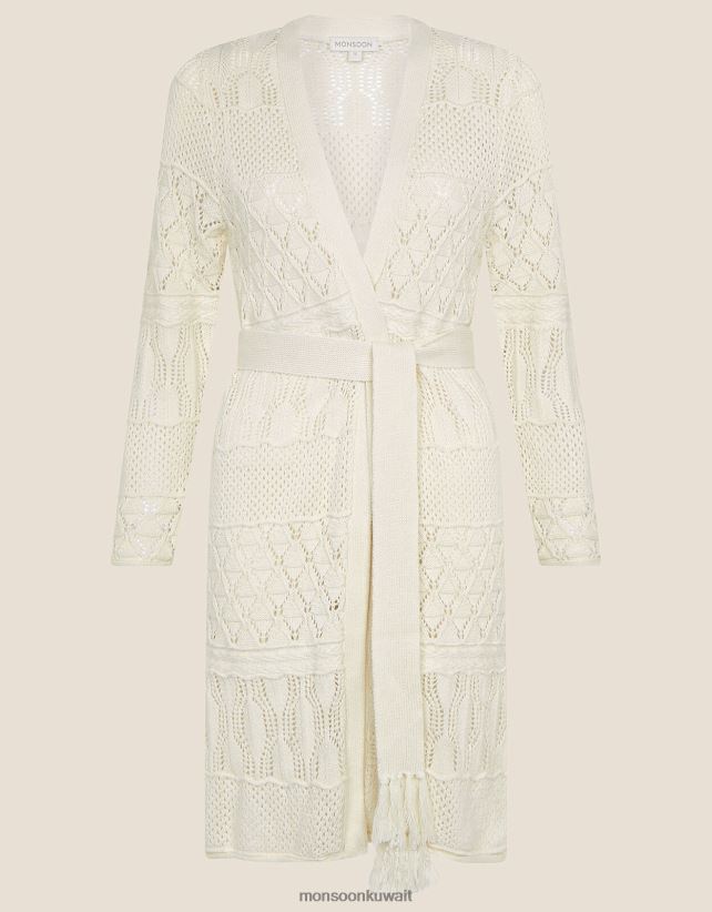 Monsoon accessorize - غرزة الكروشيه سترة طويلة ملابس عاج Monsoon نحيف N4BV8X1003