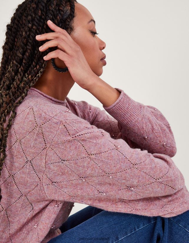 Monsoon Kuwait - سترة تفاصيل اللؤلؤ ملابس لون القرنفل Monsoon نحيف N4BV8X61