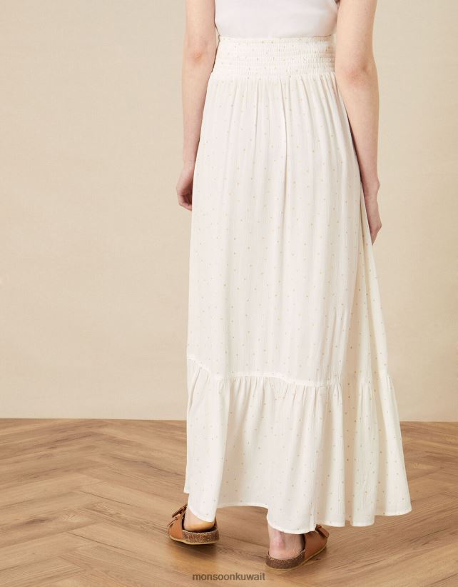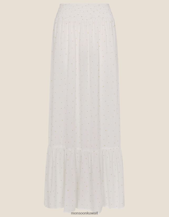 تنورة ماكسي بطبقات وطبعة فويل ملابس أبيض Monsoon نحيف N4BV8X856 - Monsoon children