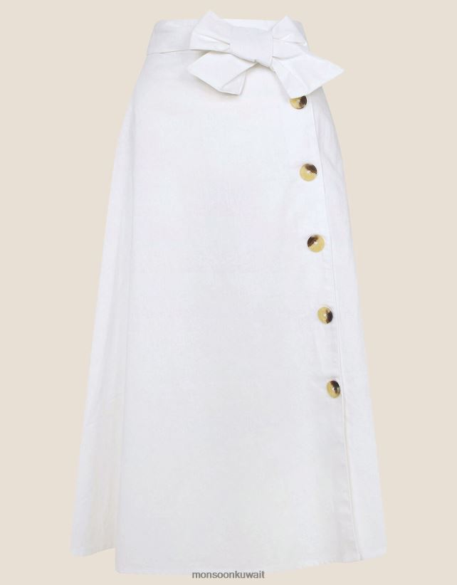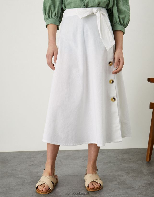 تنورة متوسطة الطول بأزرار وهمية من القطن المستدام ملابس أبيض Monsoon نحيف N4BV8X878 - Monsoon kuwait online shopping