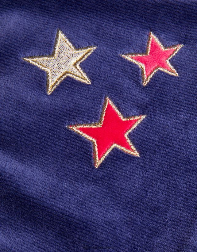 ارقص مع النجوم. مع تفاصيل متعددة الطبقات لمزيد من الحركة، هذه التنورة القطيفة مصنوعة باللون الأزرق الداكن البسيط مع نجوم مطرزة في المقدمة. فهي تتألق بلمسات معدنية ذهبية، وتتوافق مع حزام الخصر المطاطي للحصول على مقاس مريح للغاية. كجزء من الرحلة لجعل ملابسنا أكثر لطفًا مع العالم من حولنا، تم تصنيع هذا المنتج باستخدام مواد خام أكثر استدامة، مثل القطن العضوي والبوليستر المعاد تدويره. والفيسكوز من الغابات المزروعة بطريقة مسؤولة. أزرق