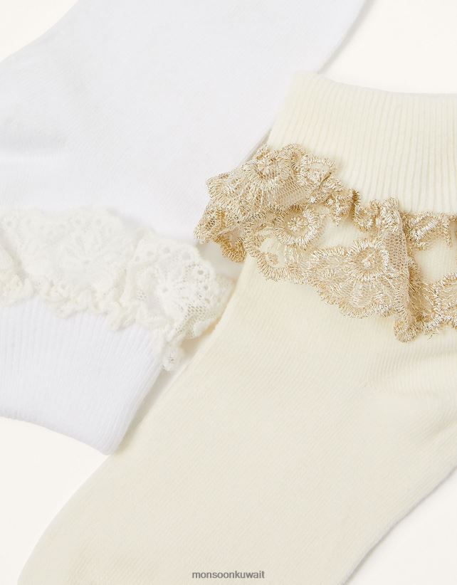 Monsoon accessorize - مجموعة جوارب مزدوجة مكشكشة من الدانتيل للأطفال ملحق متعدد Monsoon بنت N4BV8X2713