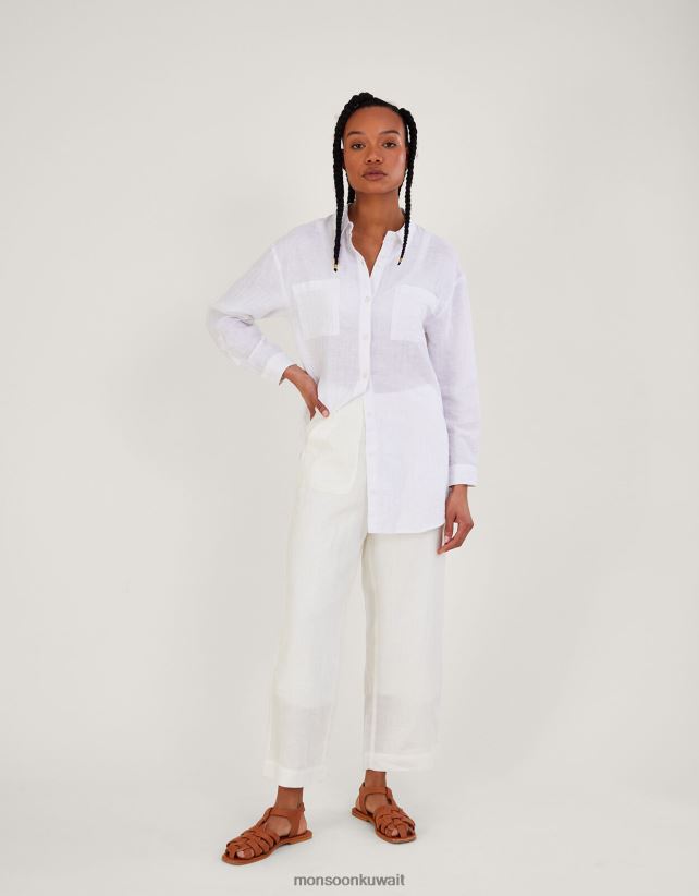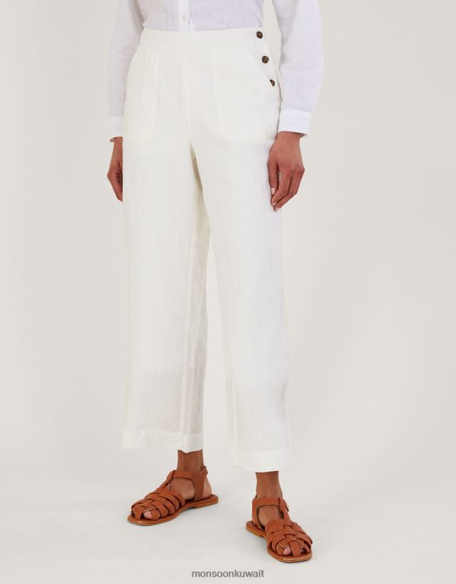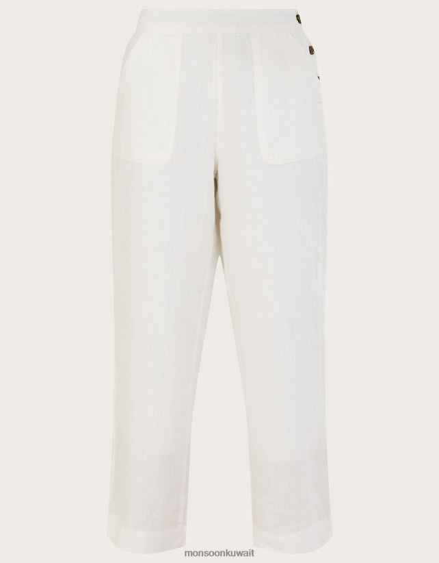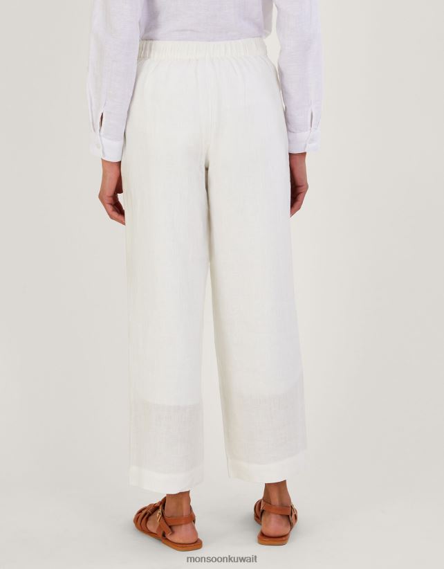 بنطلون كتان سهل الارتداء ملابس أبيض Monsoon نحيف N4BV8X1027 - Monsoon kuwait online shopping