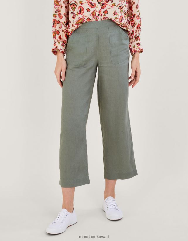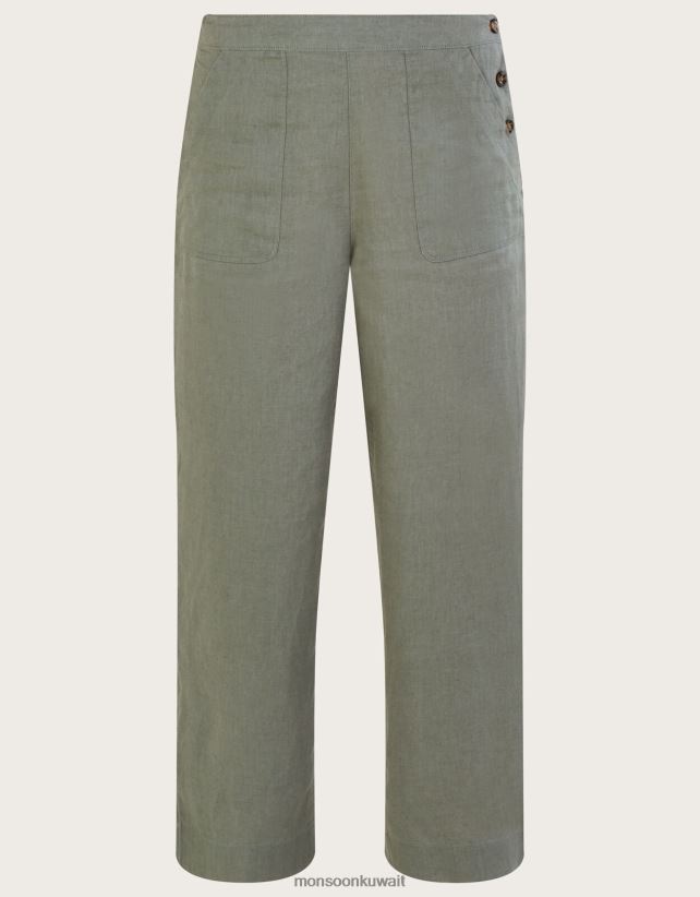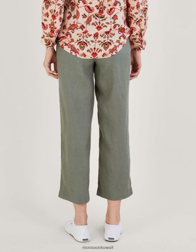 بنطلون كتان سهل الارتداء ملابس الأخضر (الكاكي) Monsoon نحيف N4BV8X1182 - Monsoon online customer service