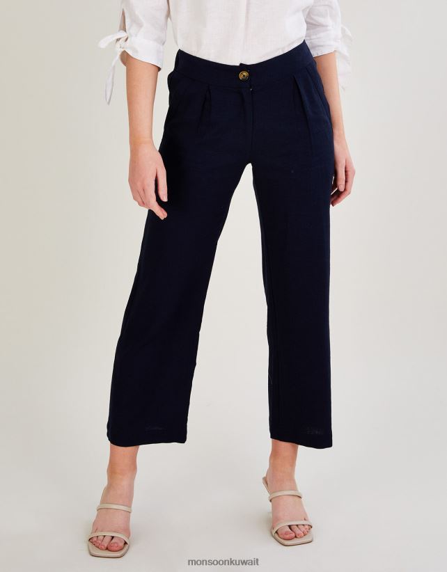 Monsoon Kuwait - بنطلون ليلى قصير من مزيج الكتان ملابس الأزرق الداكن) Monsoon نحيف N4BV8X1035