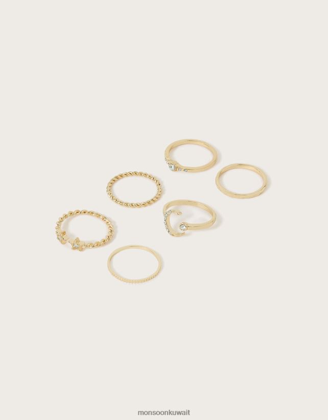 حلقات تكديس القمر المتلألئة، 6 قطع ملحق ذهب Monsoon نحيف N4BV8X1308 - Monsoon kuwait online shopping