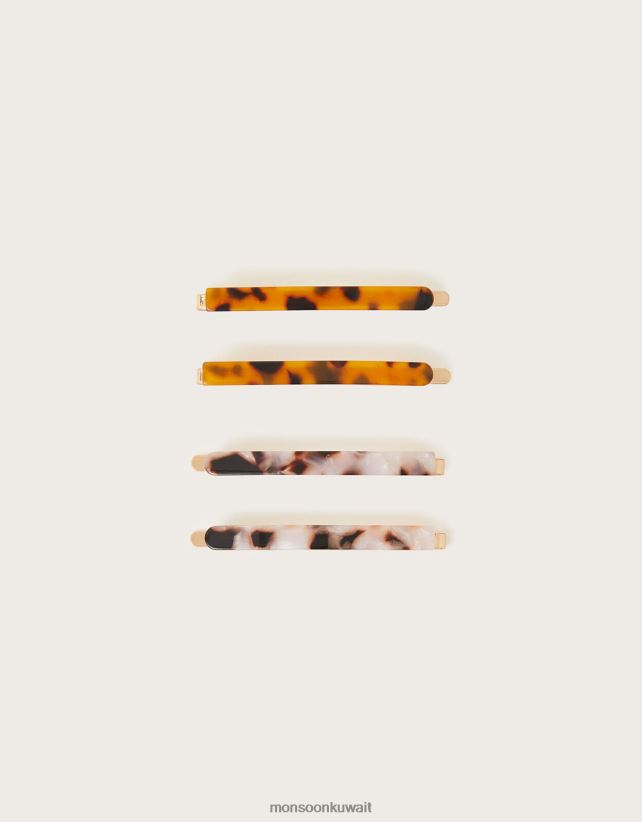 Monsoon accessorize - شرائح شعر صدفة السلحفاة، 4 عبوات ملحق موضة Monsoon نحيف N4BV8X1341