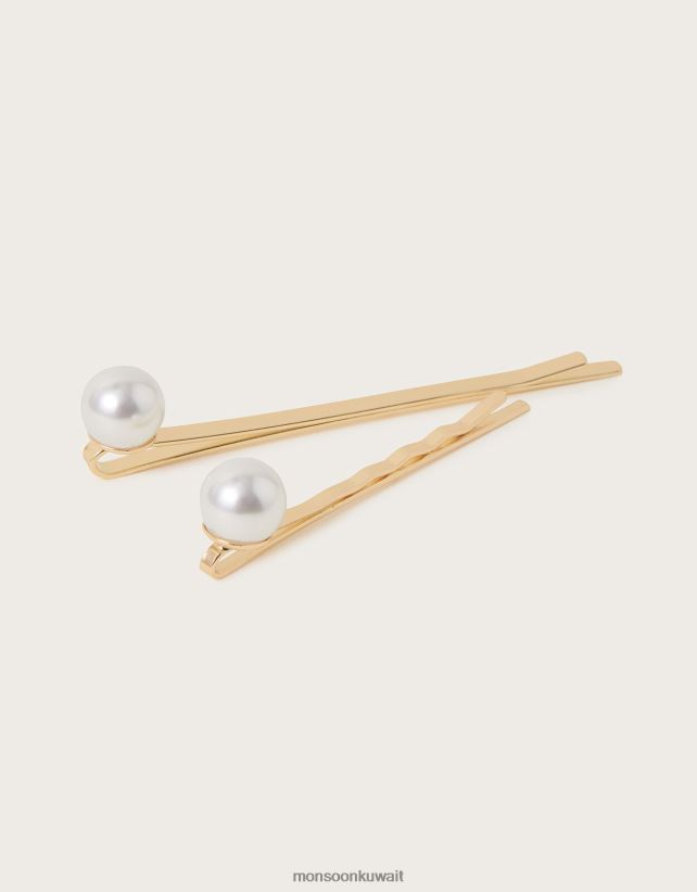 Monsoon Kuwait - مجموعة شرائح شعر اللؤلؤ مكونة من قطعتين ملحق أنيق Monsoon نحيف N4BV8X1293