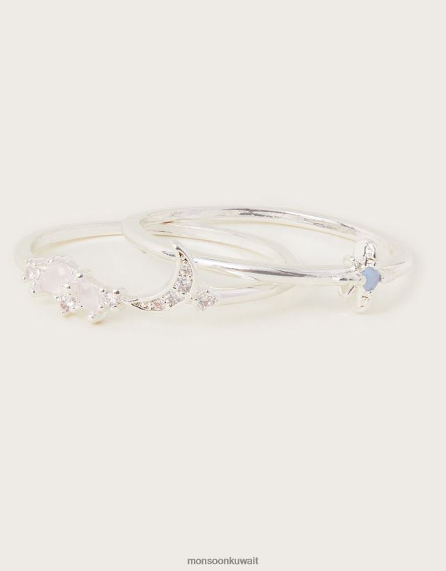 Monsoon UAE - مجموعة خواتم التمنيات مكونة من قطعتين ملحق فضة Monsoon نحيف N4BV8X1455
