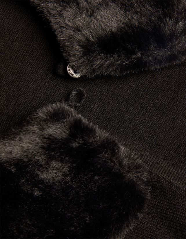 سترة صوفية فائقة النعومة بياقة من الفرو الصناعي ملابس أسود Monsoon بنت N4BV8X1719 - Monsoon kuwait online shopping