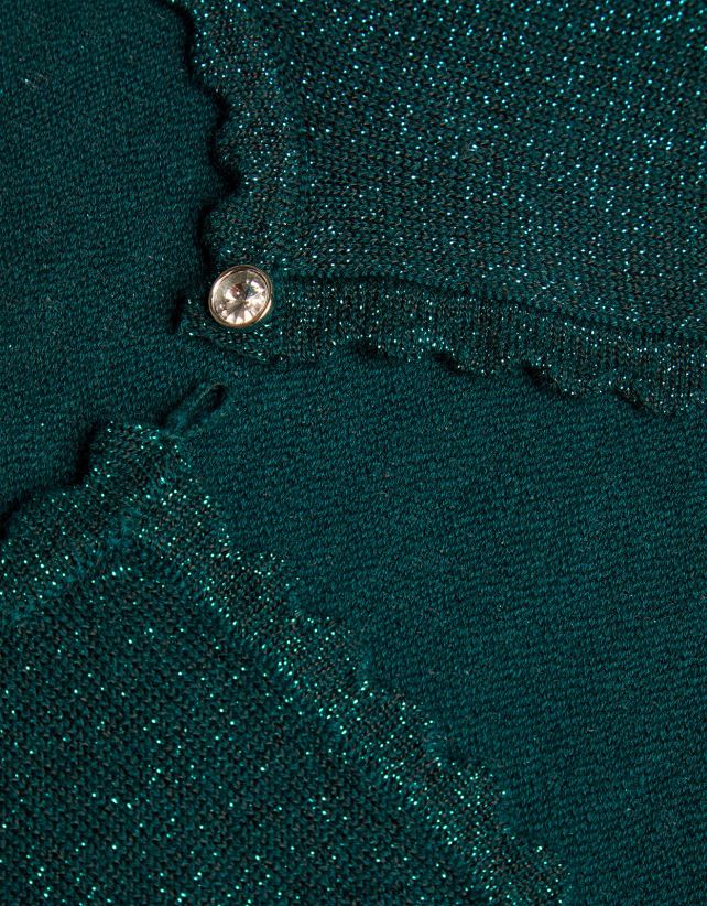 ضعي هذه السترة اللطيفة والمتألقة فوق طفلك الصغير لمزيد من الدفء في أيام المناسبات الطويلة تلك. تأتي هذه القطعة مزودة بزر واحد للتثبيت في الأعلى حتى يتمكنوا من إظهار ملابسهم الجميلة. أخضر