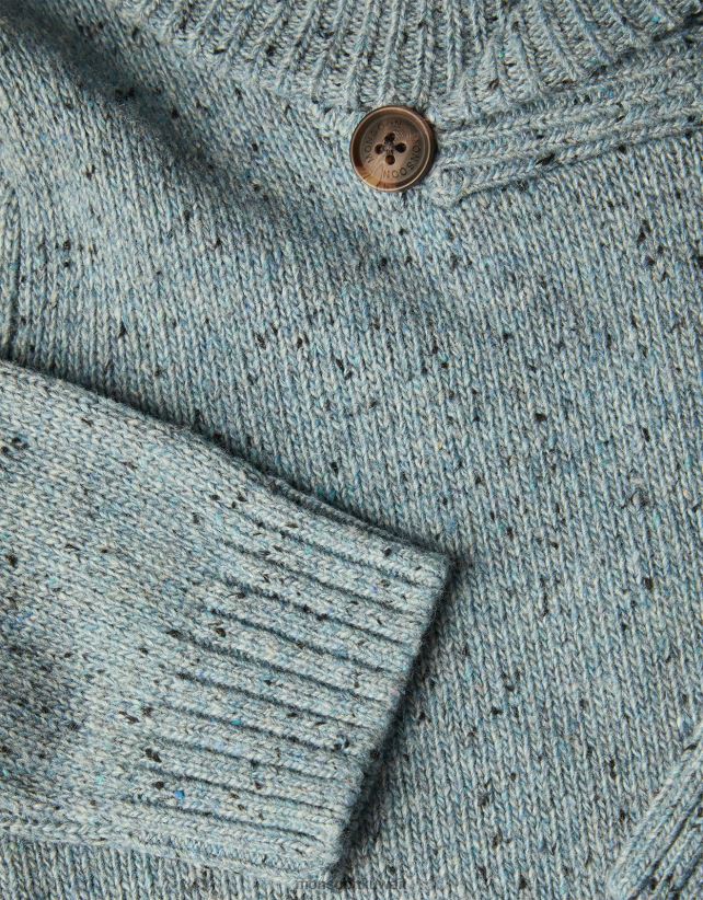 أنيقة وكاجوال، كل ذلك في قطعة واحدة. نسيج مريح يبني هذه السترة المنسوجة بلمسة نهائية مرقطة باللون الأزرق. يتميز بقصة عادية مع ياقة شال مطوية يمكن فك أزرارها للحصول على خط رقبة أكثر استرخاءً
