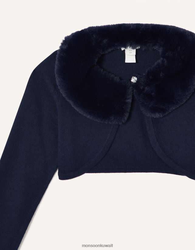 Monsoon معنى - سترة صوفية فائقة النعومة بياقة من الفرو الصناعي ملابس الأزرق الداكن) Monsoon بنت N4BV8X2009