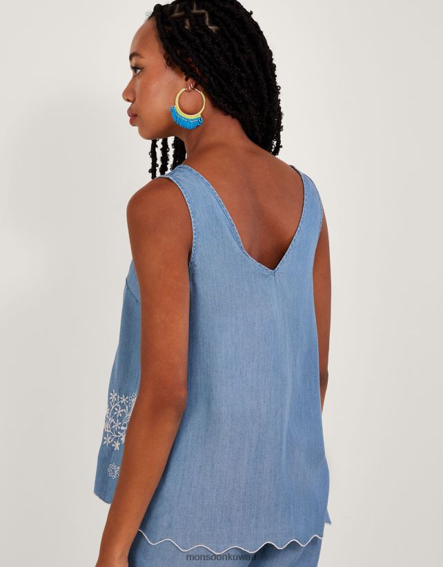 أعلى خزان الدنيم المطرزة ملابس الأزرق (الدنيم الأزرق) Monsoon نحيف N4BV8X771 - Monsoon kuwait avenues