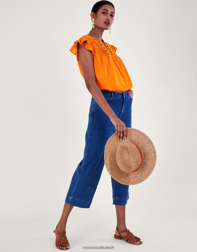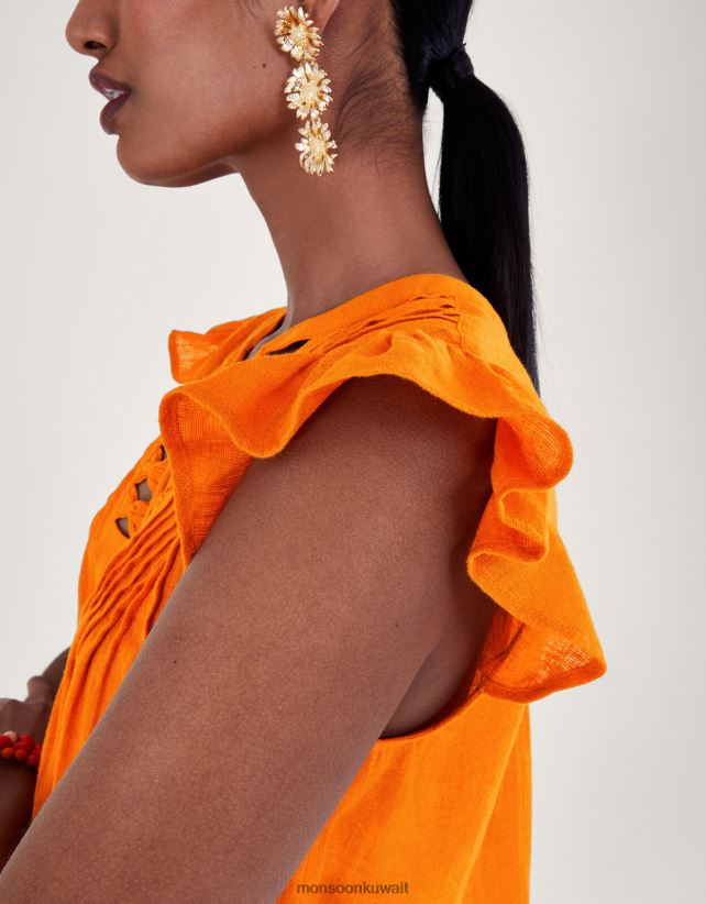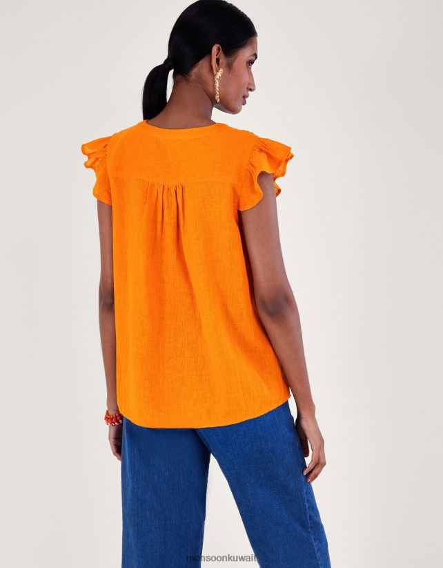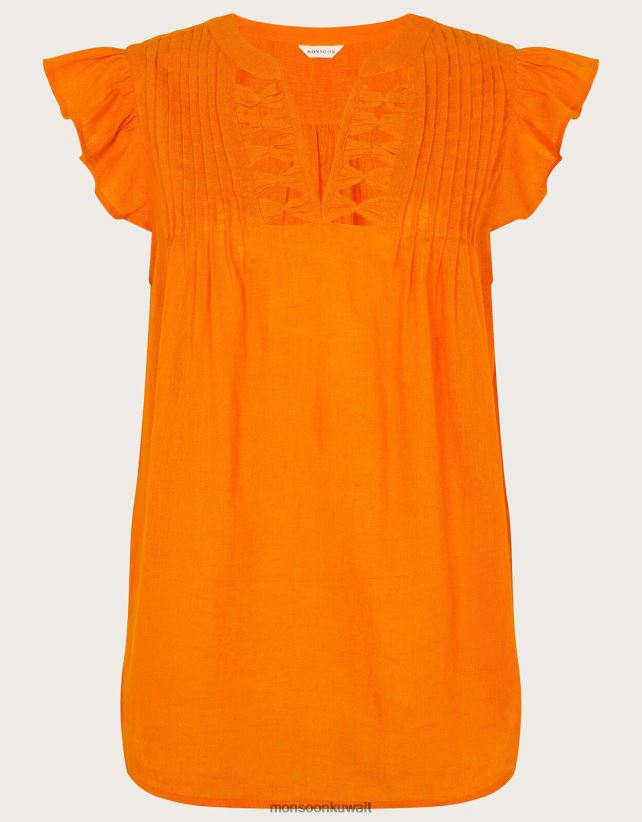بلوزة بأكمام واسعة وتفاصيل رقبة من مزيج الكتان ملابس البرتقالي Monsoon نحيف N4BV8X335 - Monsoon online customer service