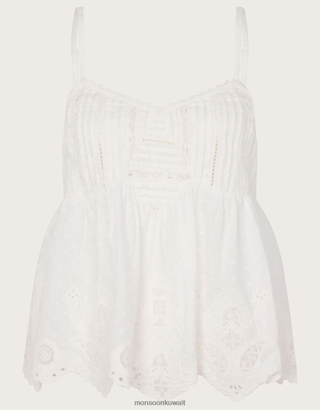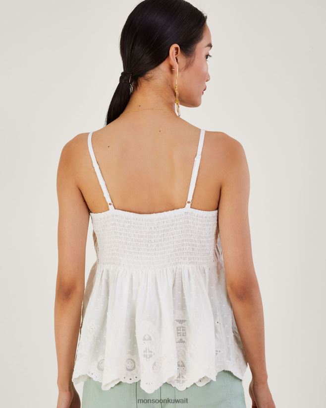 بلوزة كامي بحافة صدفية مطرزة ممتازة ملابس أبيض Monsoon نحيف N4BV8X168 - Monsoon children
