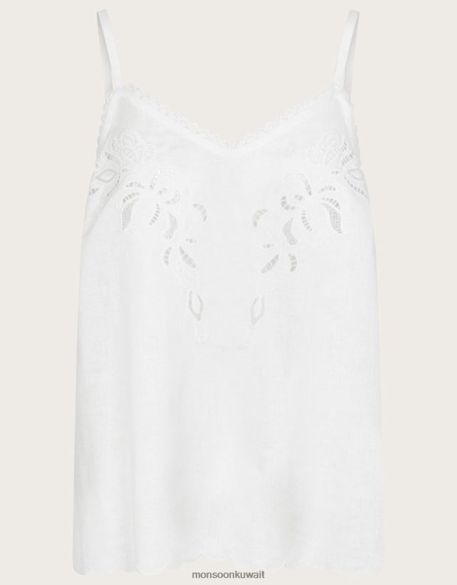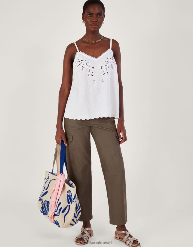 بلوزة كامي مطرزة بقطع من مزيج الكتان ملابس عاج Monsoon نحيف N4BV8X963 - Monsoon online customer service