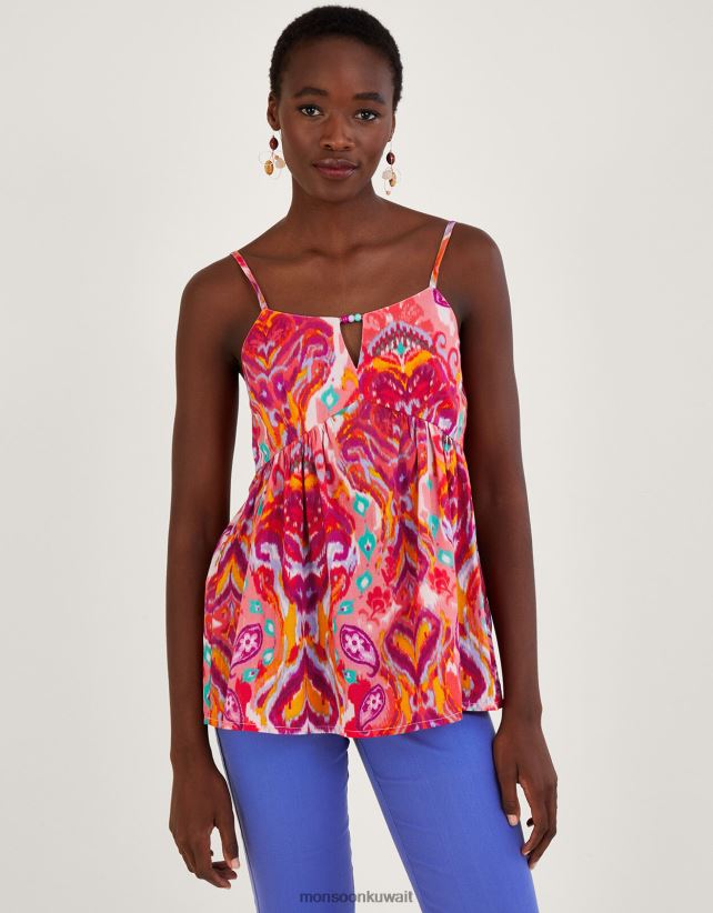 كامي بطبعة بيزلي من Ikat مصنوع من القطن المستدام ملابس لون القرنفل Monsoon نحيف N4BV8X909 - Monsoon children