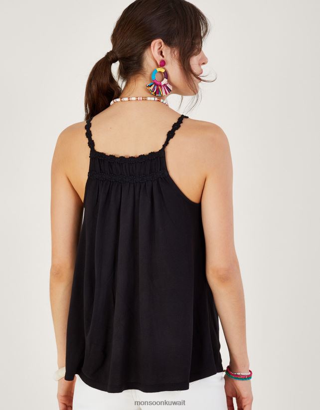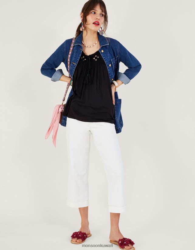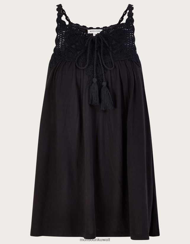 كامي جيرسي مزخرف بالكروشيه ملابس أسود Monsoon نحيف N4BV8X266 - Monsoon kuwait online shopping