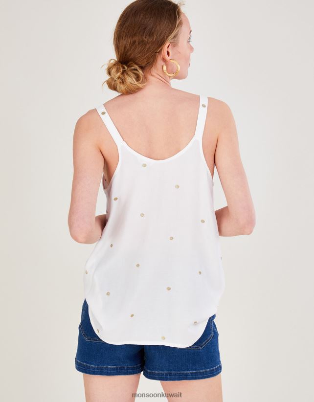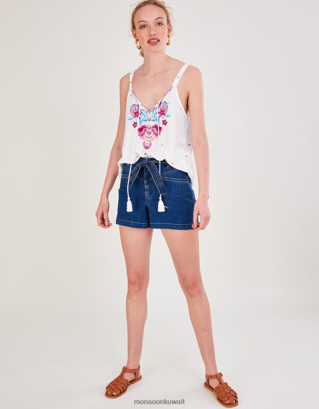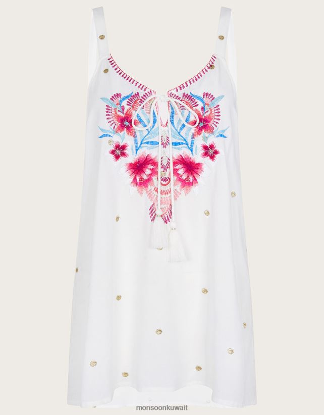 Monsoon محل - بلوزة كامي مطرزة في لينزينج إيكوفيرو ملابس أبيض Monsoon نحيف N4BV8X902