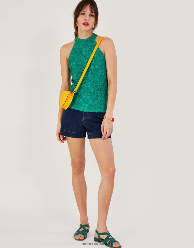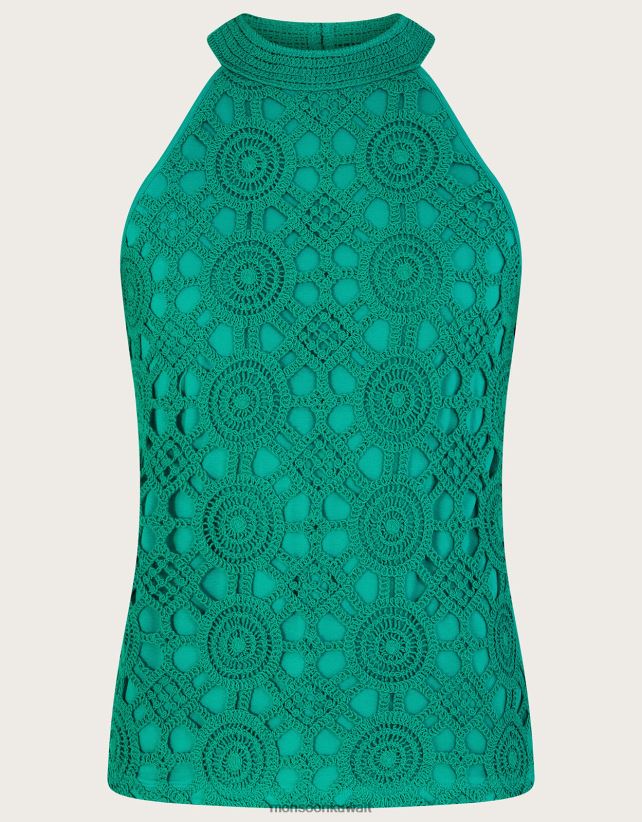 Monsoon accessorize - بلوزة كروشيه بدون أكمام مع لينزينج إيكوفيرو ملابس أخضر Monsoon نحيف N4BV8X247