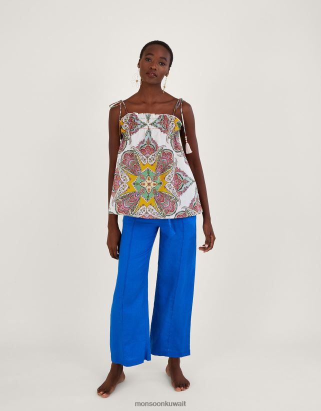 نداء الشمس... مصمم بطبعة وشاح بيزلي نابضة بالحياة، هذا القميص البسيط والمريح يتميز بمظهر مريح مع خط عنق مكشكش مع زخارف من الخرز الذهبي الذي سوف يلمع تحت شمس الصيف. توفر أحزمة السباغيتي لمسة رقيقة، حيث يتم ربطها على الأكتاف للحصول على المقاس المرغوب فيه. مجرد واحدة من خطواتنا نحو مستقبل الموضة المستدامة، نقدم S.E.W: التزامنا باستخدام المزيد من المواد الصديقة للبيئة في مجموعاتنا. تم إنشاء هذه المجموعة الكبسولة باستخدام أقمشة صديقة للبيئة ولها تأثير أقل على البيئة. سترى مزيجًا من القطن العضوي وأفضل المصادر، والفيسكوز من الغابات المزروعة بشكل أكثر مسؤولية والبوليستر المعاد تدويره المصنوع من نفايات ما بعد الاستهلاك. متعدد