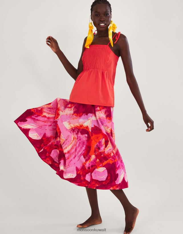 Monsoon Kuwait - بلوزة كامي بكسرات من تصميم فينيكس ملابس البرتقالي Monsoon نحيف N4BV8X206