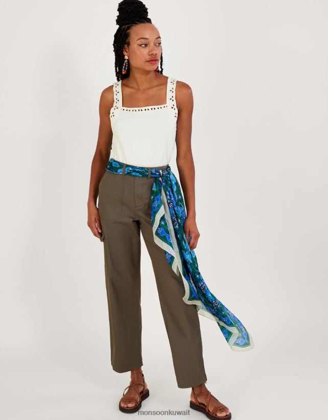 Monsoon UAE - قميص كامي بدون أكمام من الجيرسيه ملابس عاج Monsoon نحيف N4BV8X873